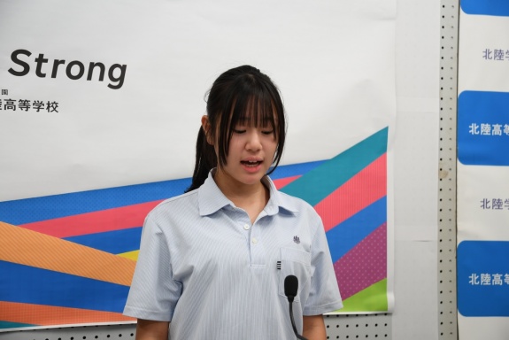 代議員長の石川 結菜さんが司会を務め、生徒会長の鹿浦 幸穂さん、ならびに各種委員会委員長が、前期の活動報告を行いました。前期生徒会の大きな役割に、北紫祭の企画・運営があります。今年度の北紫祭も生徒会執行部の皆さんの尽力のおかげで大成功をおさめました。生徒会執行部の皆さん、前期の活動お疲れ様でした。