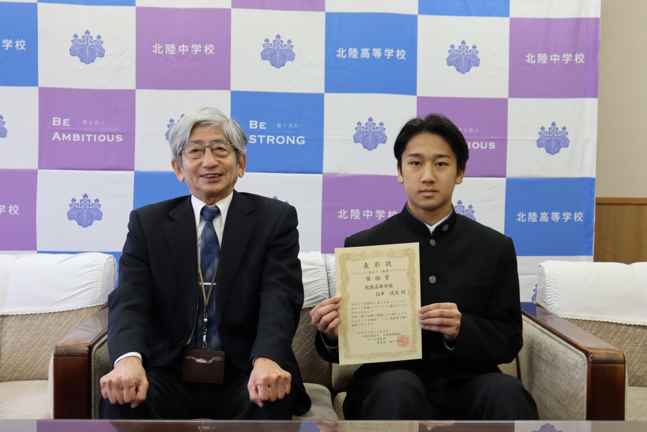 本校の特別進学コース2年・白井 洸太さんが、新聞記事を家族や友人と読み合い、対話を通して自分の考えを深める、第16回「 いっしょに読もう!新聞コンクール」(日本新聞協会主催)で、全国奨励賞を受賞しました。