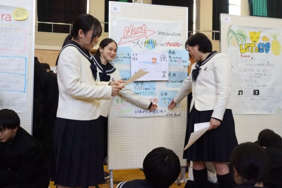 観覧した生徒たちからの評価は、その場で発表者に渡されます。そして一番よかったと思うチームを投票しました。