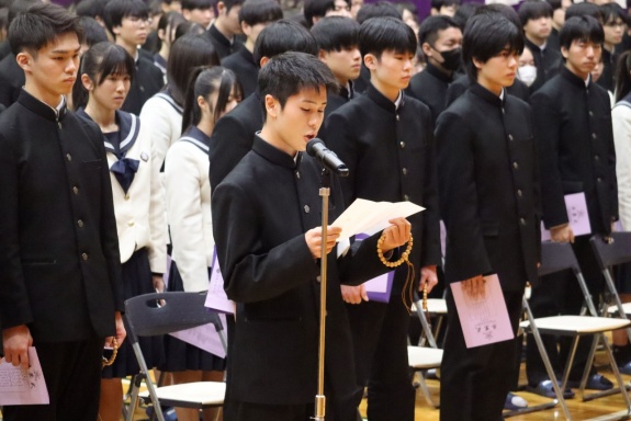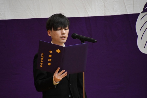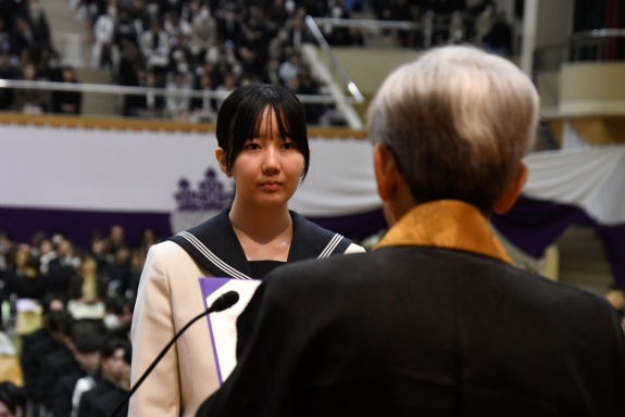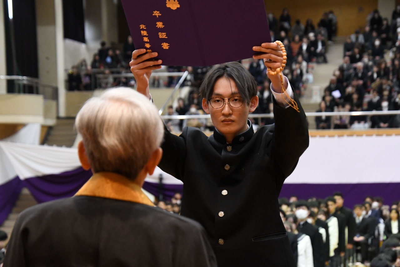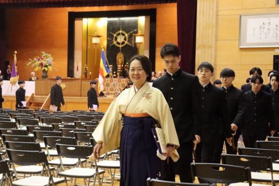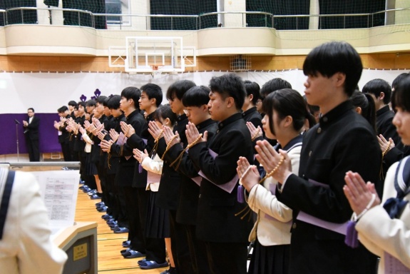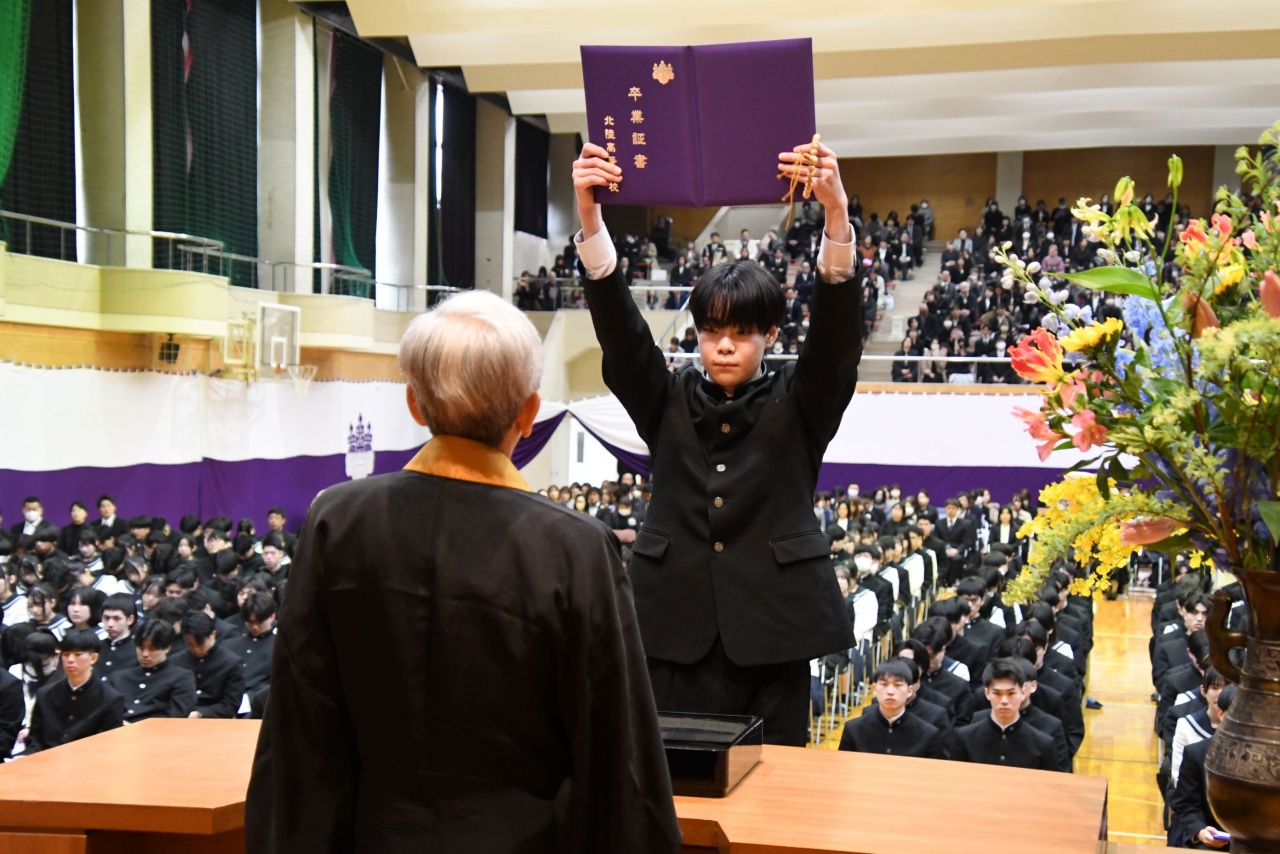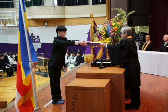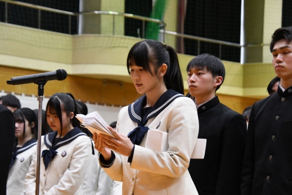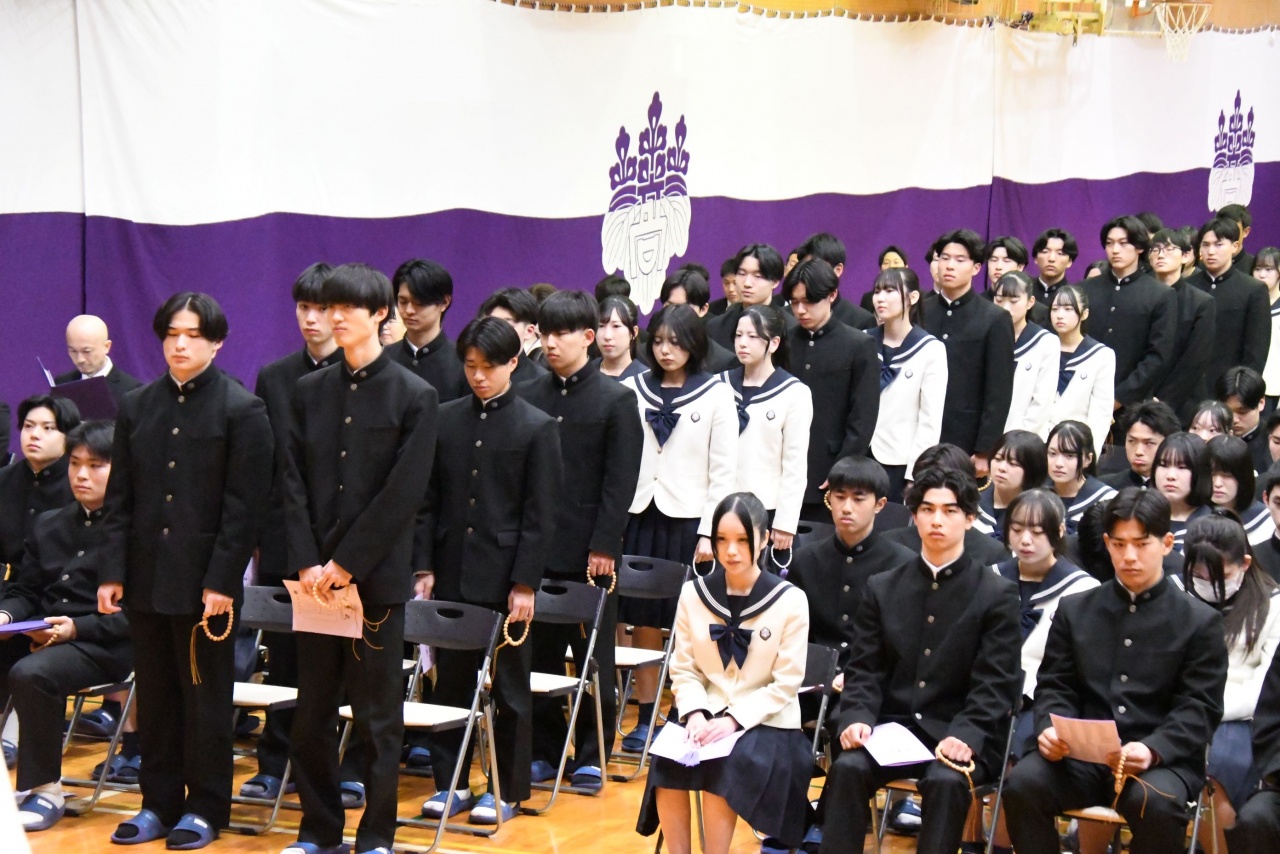 3月3日(火)、本校では令和7年度卒業式を挙行し、厳かな雰囲気のなか462名の卒業生が学び舎を巣立っていきました。普通科第78回405名、商業科第70回57名の生徒たちが、それぞれの進路へ向けて新たな一歩を踏み出す記念すべき日となりました。多くの保護者の皆様に加え、来賓の方々にもご臨席いただき、心温まる祝辞や励ましの言葉を頂戴しました。皆様の温かなまなざしのもと、卒業証書授与をはじめとする式次第は滞りなく進み、式場には静かな緊張感と生徒たちの成長を感じ取る空気が満ちていました。また、卒業生が真摯な態度で式に臨む姿は、これまでの学校生活で培われた責任感や自立心を強く感じさせるもので、参列した人々に深い印象を残しました。その一人ひとりの姿が、節目の式典にふさわしい重みと感動を生み出し、会場全体が引き締まった雰囲気に包まれる卒業式となりました。