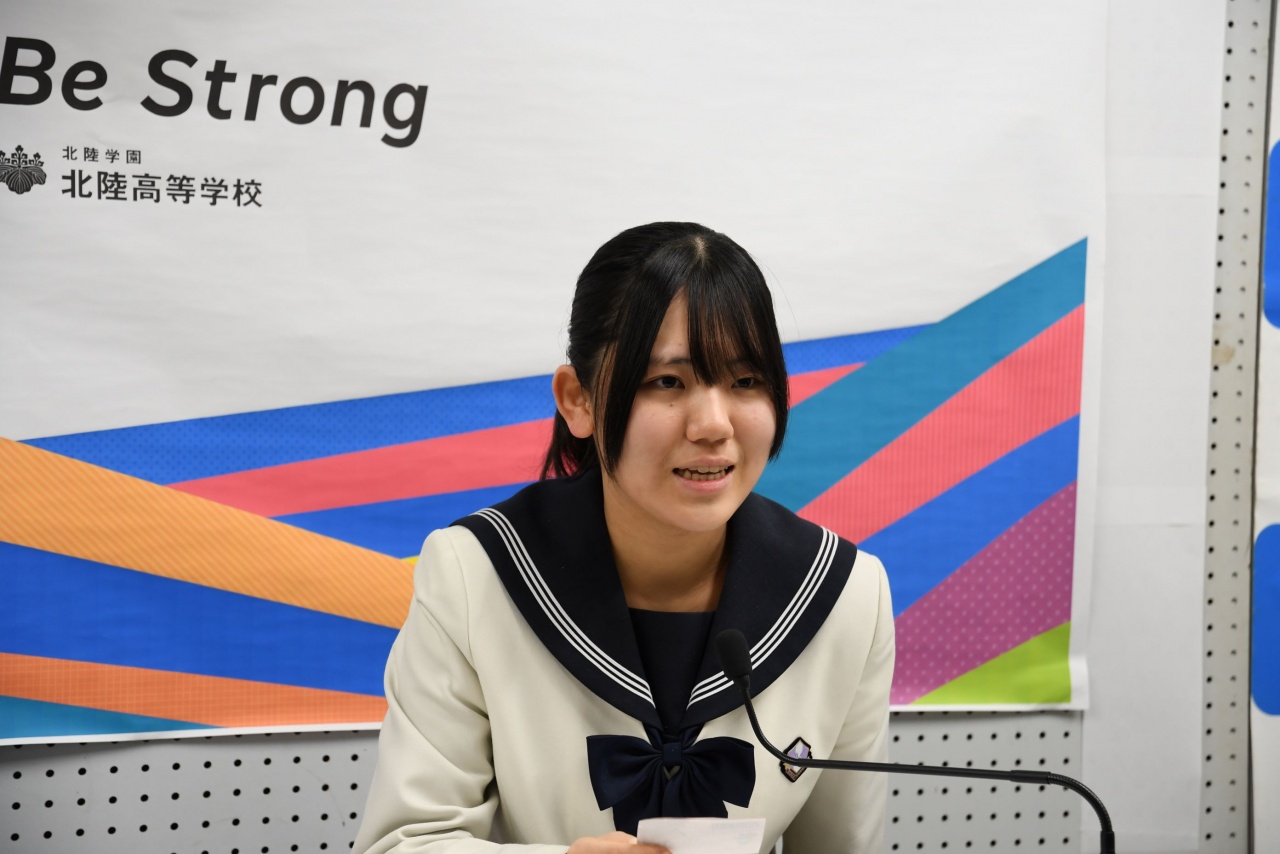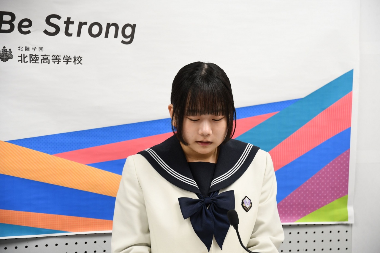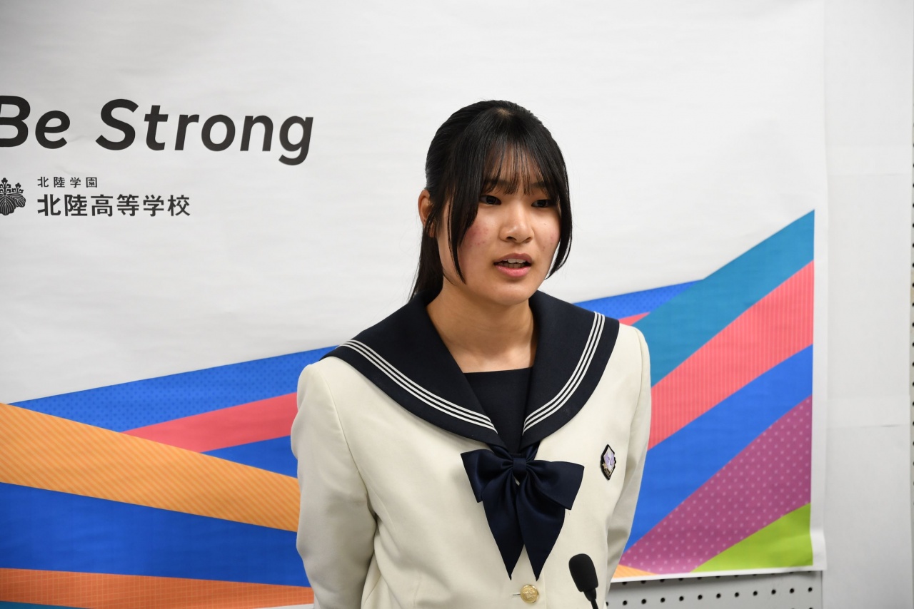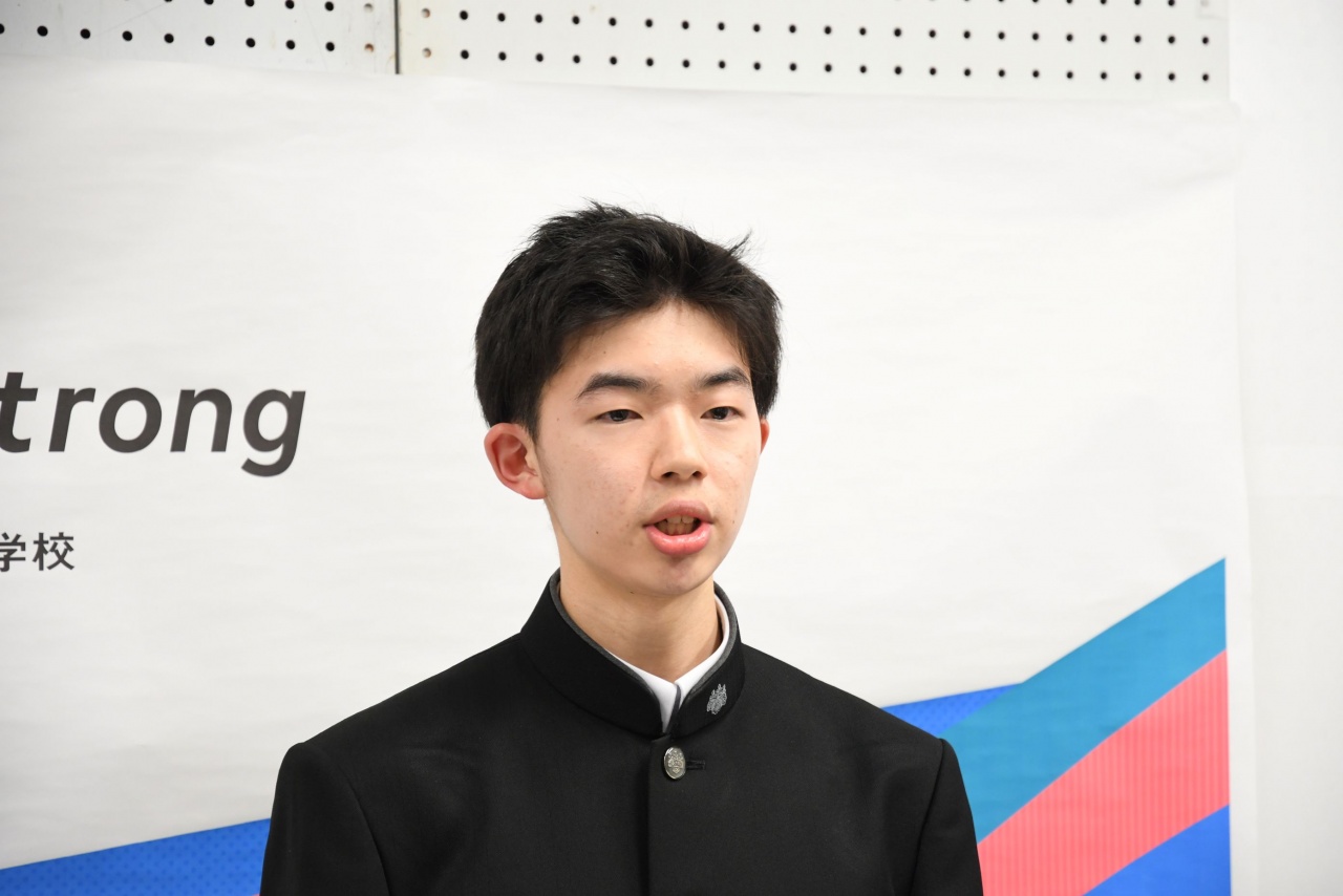 朝倉校長先生からの激励の挨拶の後、各部代表の皆さんから、全国大会に臨む意気込みが述べられました。その後、生徒を代表して、生徒会副会長 南部 理佳さんから出場する皆さんへ応援のメッセージが贈られました。全国大会に出場する皆さんの活躍を期待しています。Be Strong!